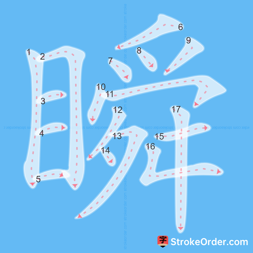 Watch the video of writing the Chinese character "瞬", learn the correct stroke order (笔顺) of the character "瞬", and master the standard way of writing the character "瞬".