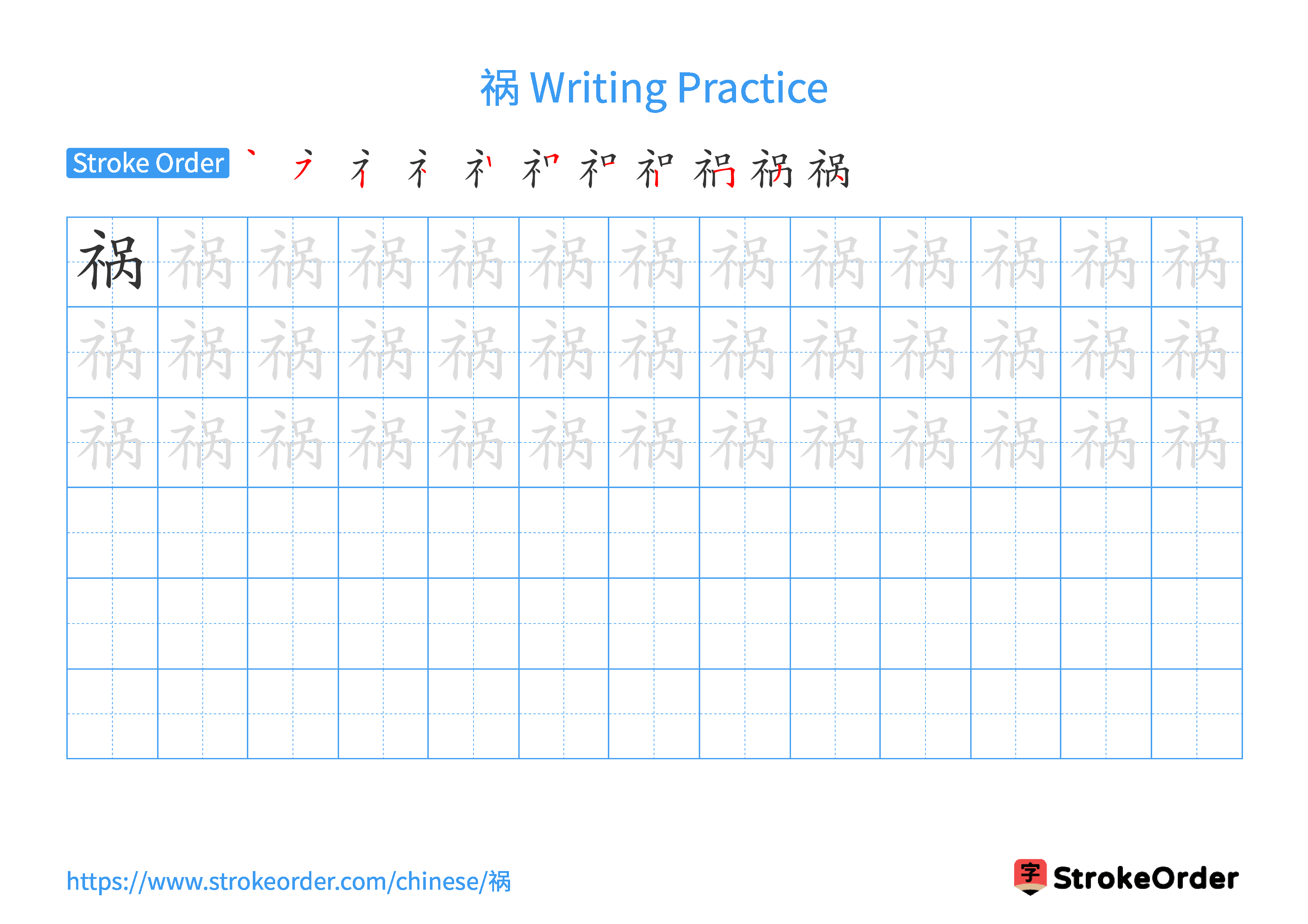 Free Printable Handwriting Practice with Stroke Order: 祸