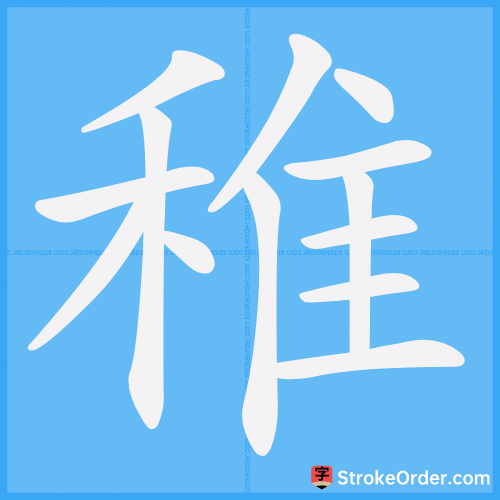 Watch the video of writing the Chinese character "稚", learn the correct stroke order (笔顺) of the character "稚", and master the standard way of writing the character "稚".