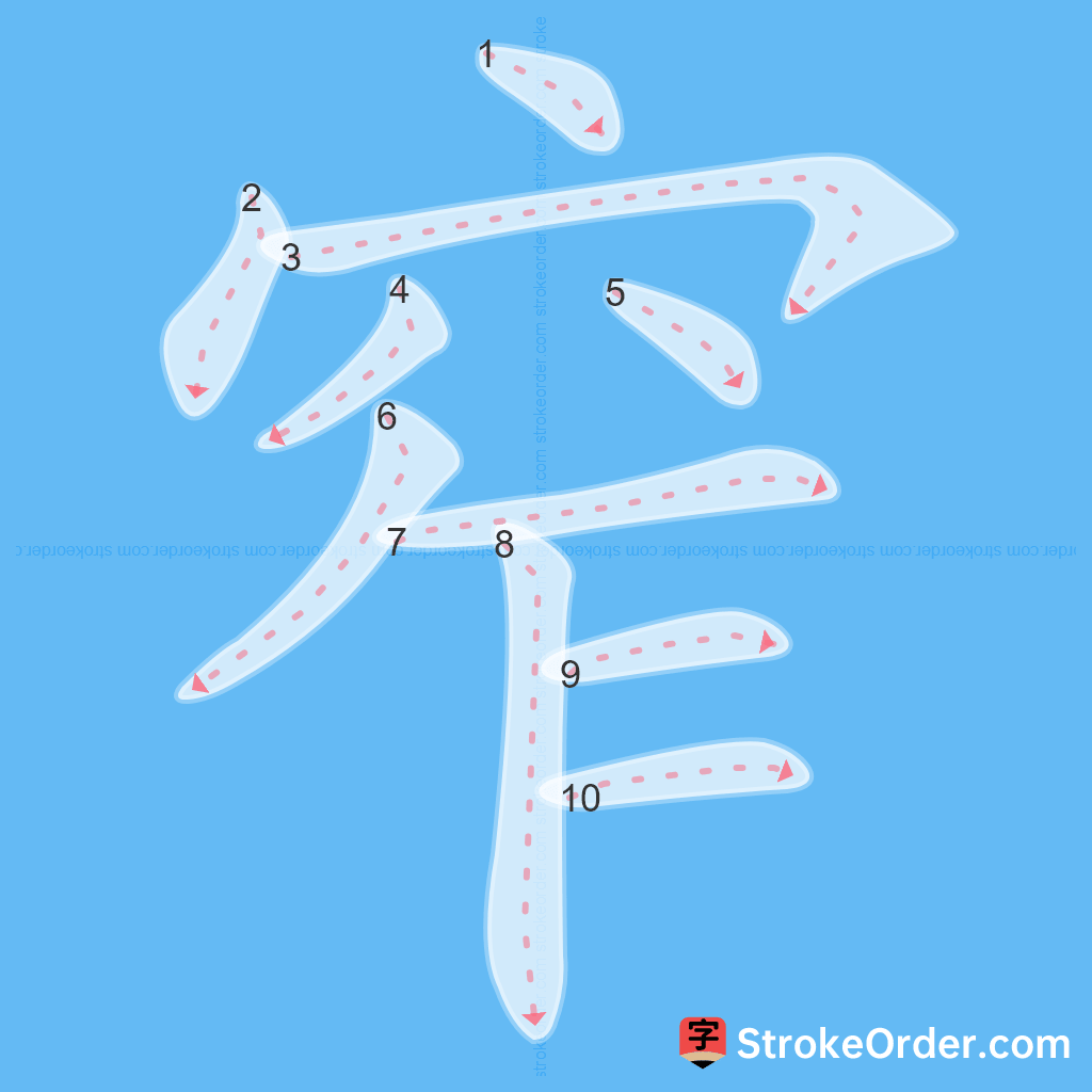 Watch the video of writing the Chinese character "窄", learn the correct stroke order (笔顺) of the character "窄", and master the standard way of writing the character "窄".