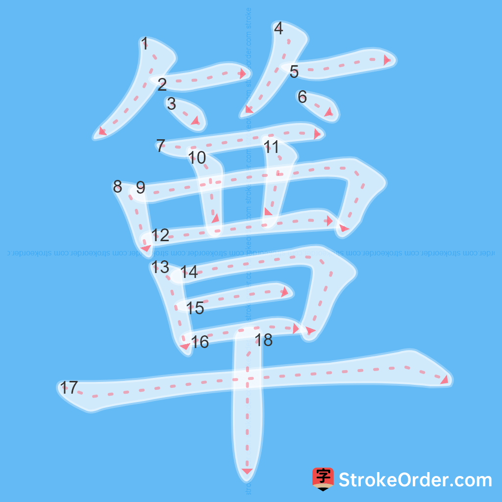 Watch the video of writing the Chinese character "簟", learn the correct stroke order (笔顺) of the character "簟", and master the standard way of writing the character "簟".