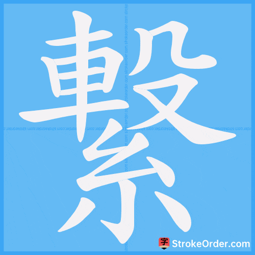 2. (verb) To tie; to bind. For example, when the winds and clouds surge suddenly, one must hastily tie the ropes. - Lu You "On the Small and Big Solitary Mountains". Other examples include: tying a waist (belt); tying shoelaces; tying the clothes drying rope to a tree; she tied a red satin ribbon in her hair; tying a purple belt around her waist; tying a card to a bag; fastening the clothes.