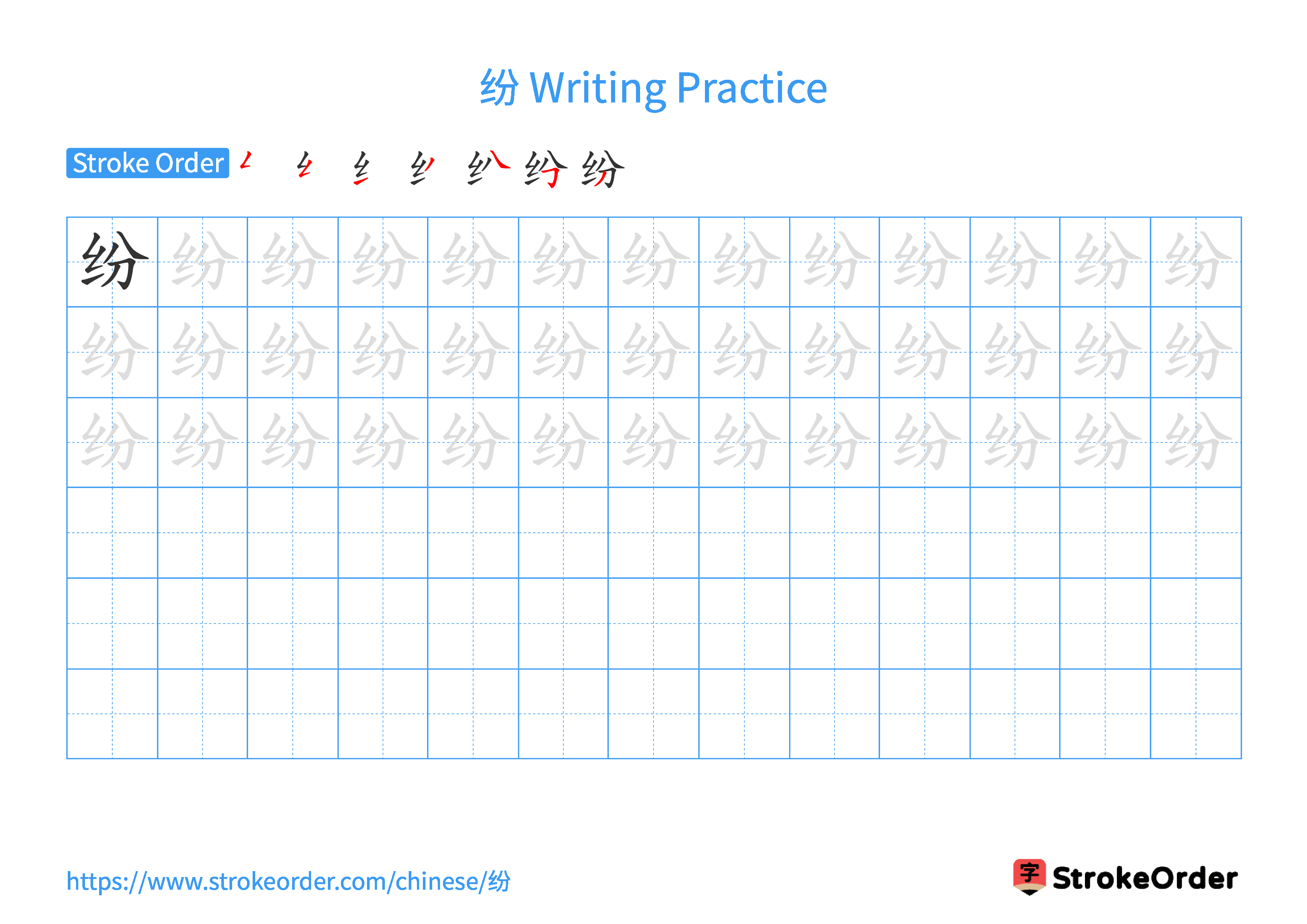 Free Printable Handwriting Practice with Stroke Order: 纷