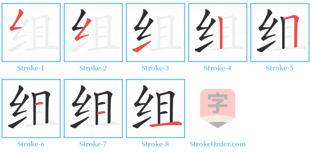 Watch the video of writing the Chinese character "组", learn the correct stroke order (笔顺) of the character "组", and master the standard way of writing the character "组".