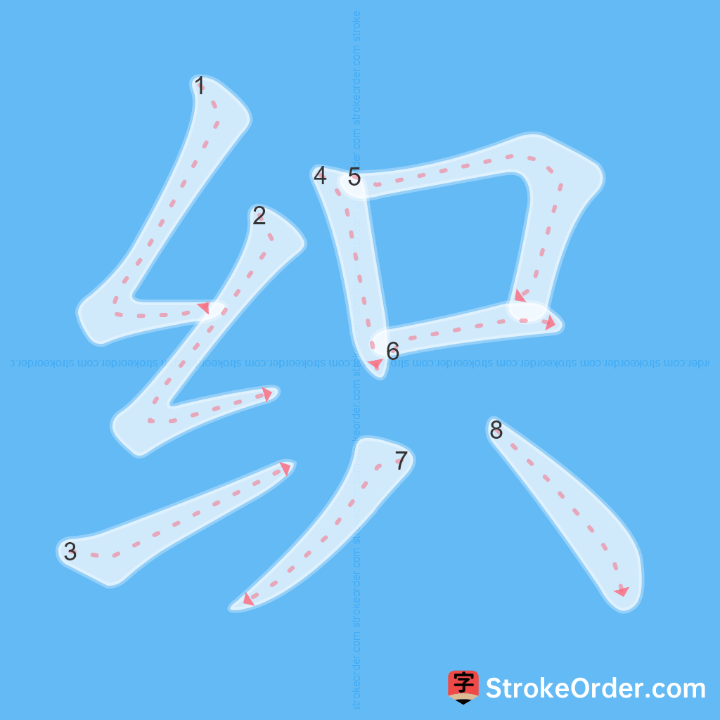 Watch the video of writing the Chinese character "织", learn the correct stroke order (笔顺) of the character "织", and master the standard way of writing the character "织".