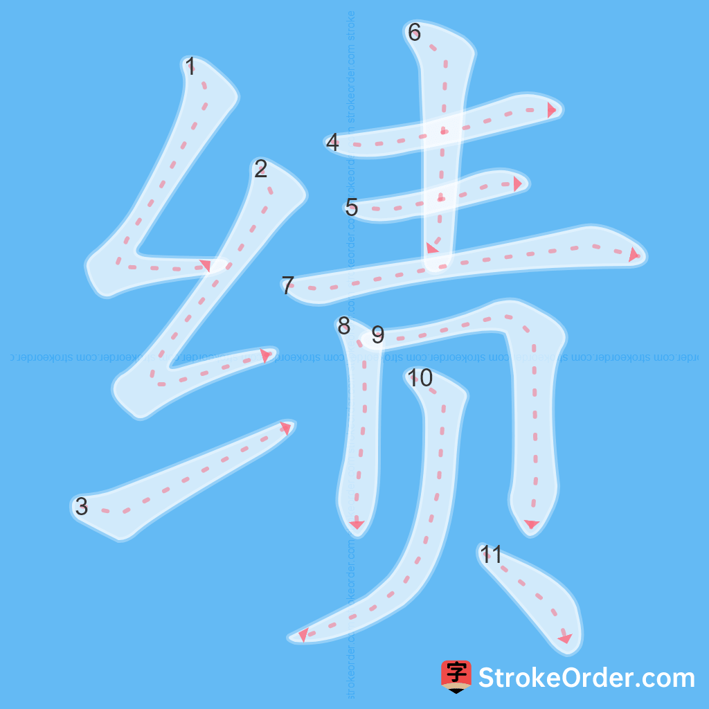 Watch the video of writing the Chinese character "绩", learn the correct stroke order (笔顺) of the character "绩", and master the standard way of writing the character "绩".
