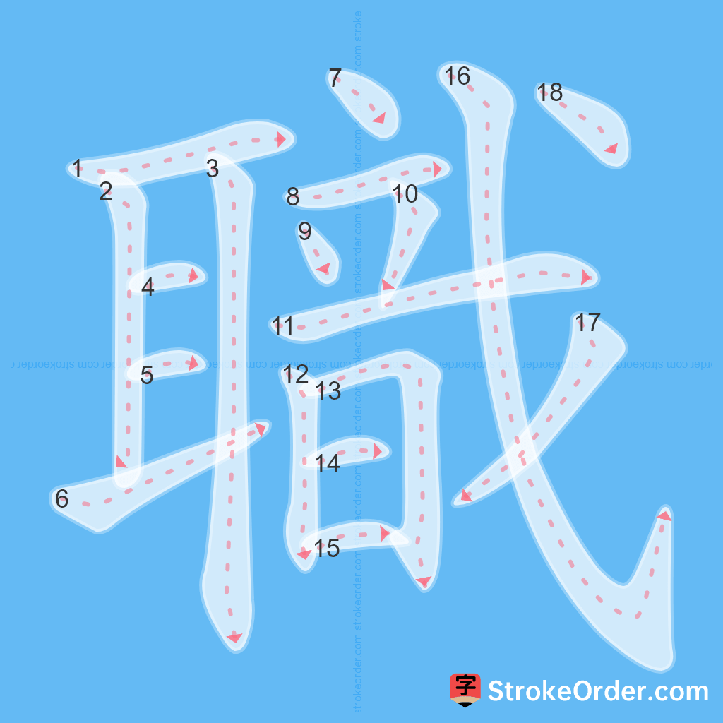 Watch the video of writing the Chinese character "職", learn the correct stroke order (笔顺) of the character "職", and master the standard way of writing the character "職".