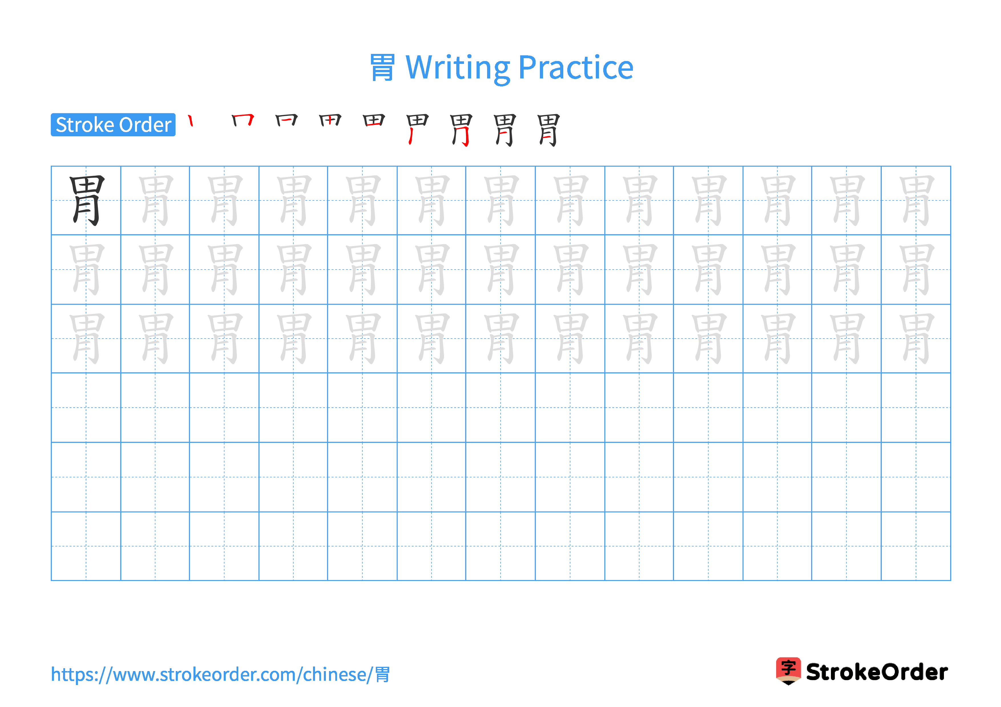 Free Printable Handwriting Practice with Stroke Order: 胃