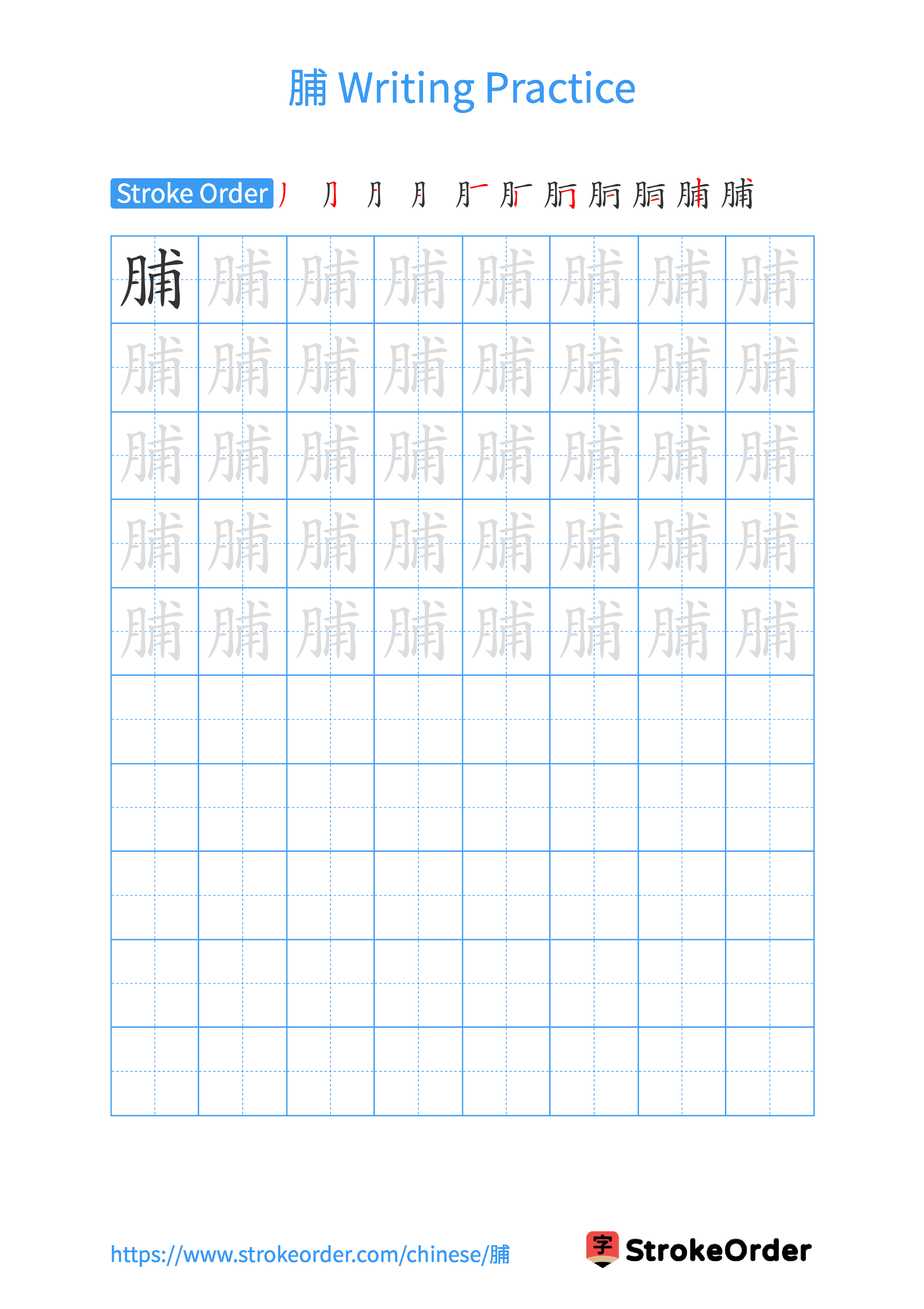 Free Printable Handwriting Practice with Stroke Order: 脯