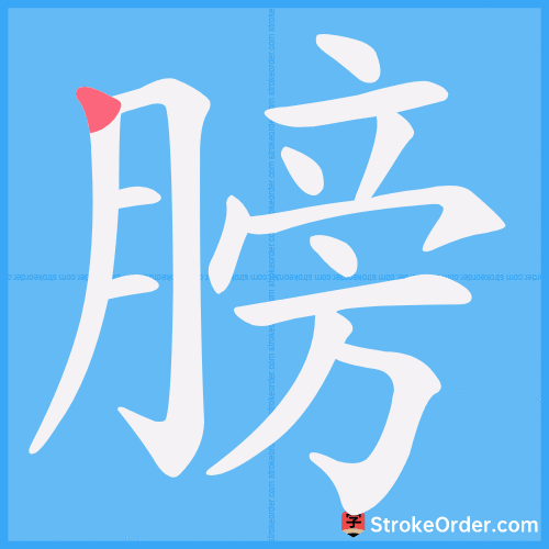 Watch the video of writing the Chinese character "膀", learn the correct stroke order (笔顺) of the character "膀", and master the standard way of writing the character "膀".
