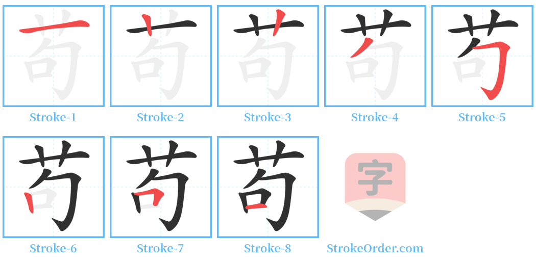 Free Printable Handwriting Practice with Stroke Order: 苟