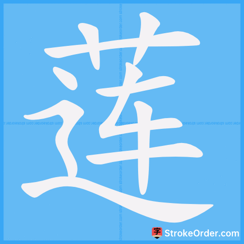 Watch the video of writing the Chinese character "莲", learn the correct stroke order (笔顺) of the character "莲", and master the standard way of writing the character "莲".