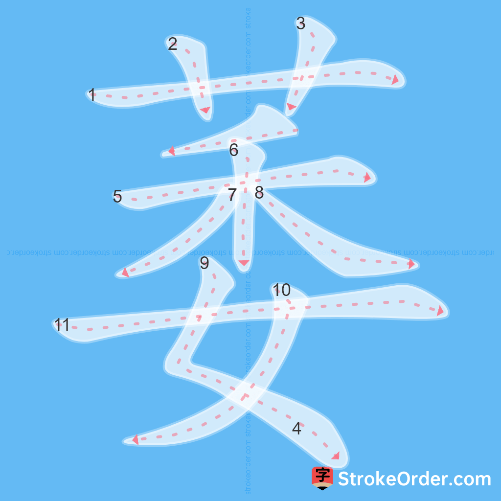 Watch the video of writing the Chinese character "萎", learn the correct stroke order (笔顺) of the character "萎", and master the standard way of writing the character "萎".