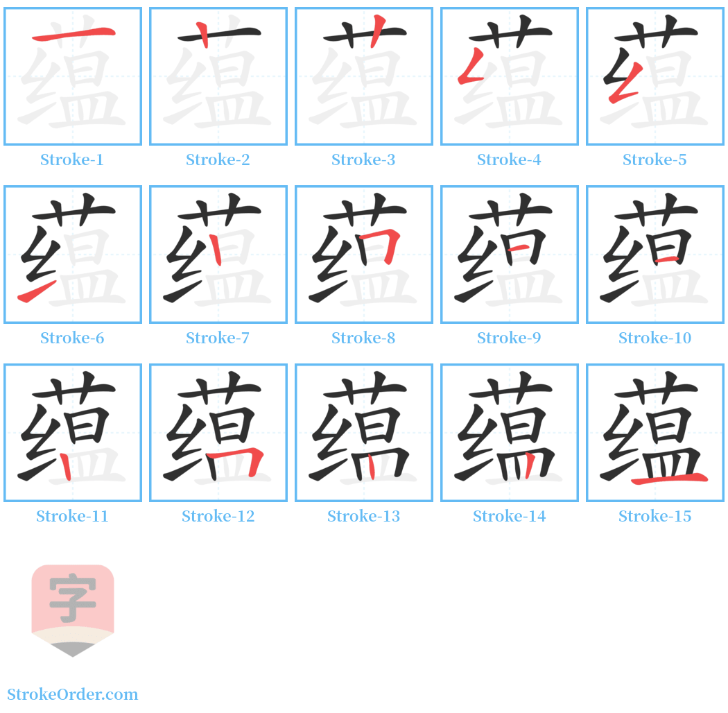 Watch the video of writing the Chinese character "蕴", learn the correct stroke order (笔顺) of the character "蕴", and master the standard way of writing the character "蕴".