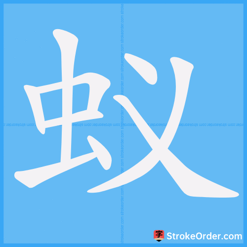 Watch the video of writing the Chinese character "蚁", learn the correct stroke order (笔顺) of the character "蚁", and master the standard way of writing the character "蚁".