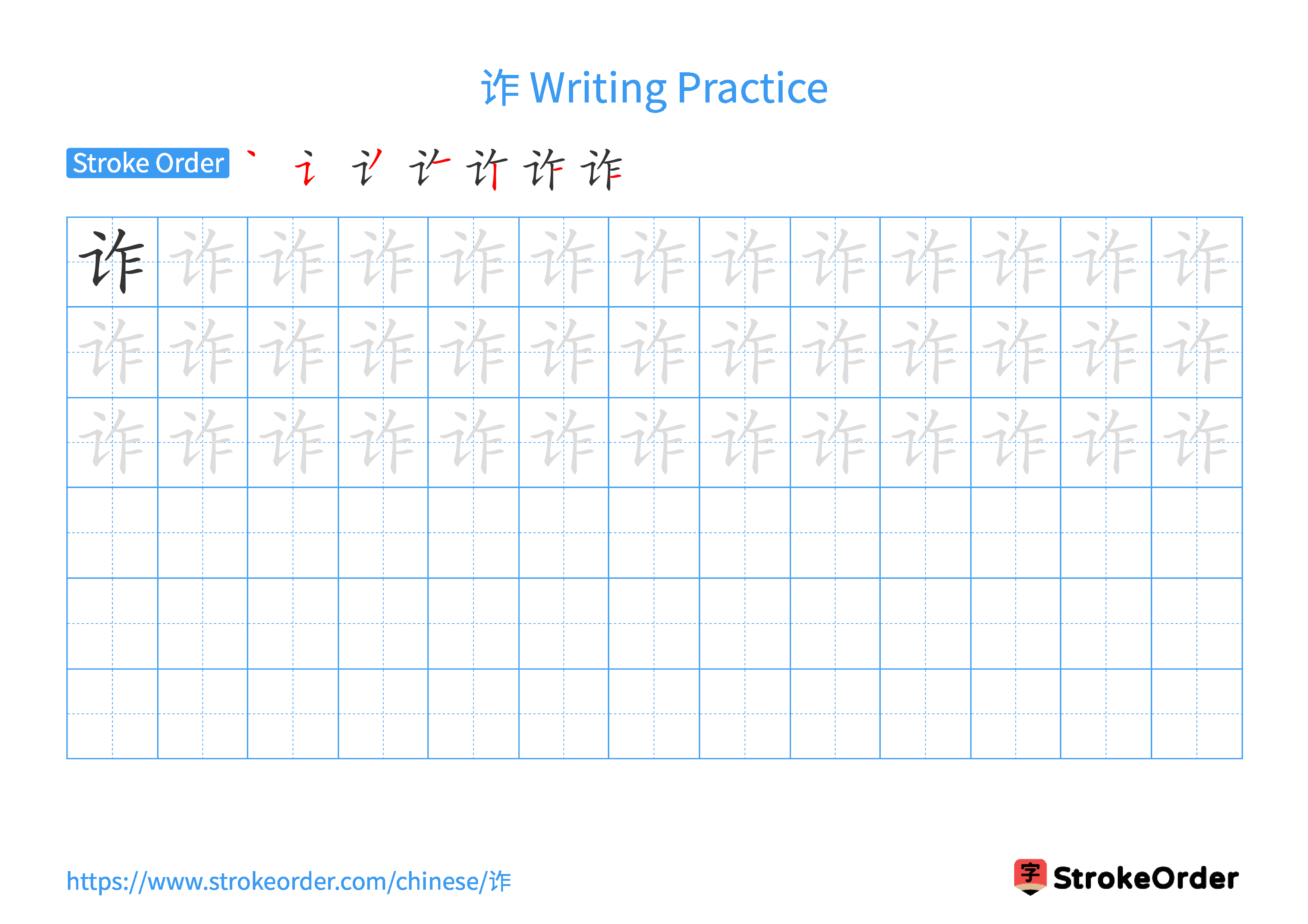 Free Printable Handwriting Practice with Stroke Order: 诈