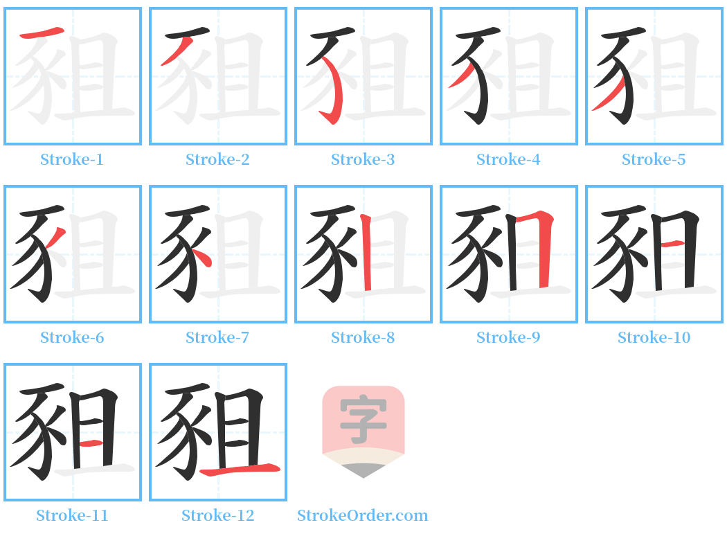豠 1. An animal similar to a pig mentioned in ancient texts. 1. 古书上说的猪一类的动物。