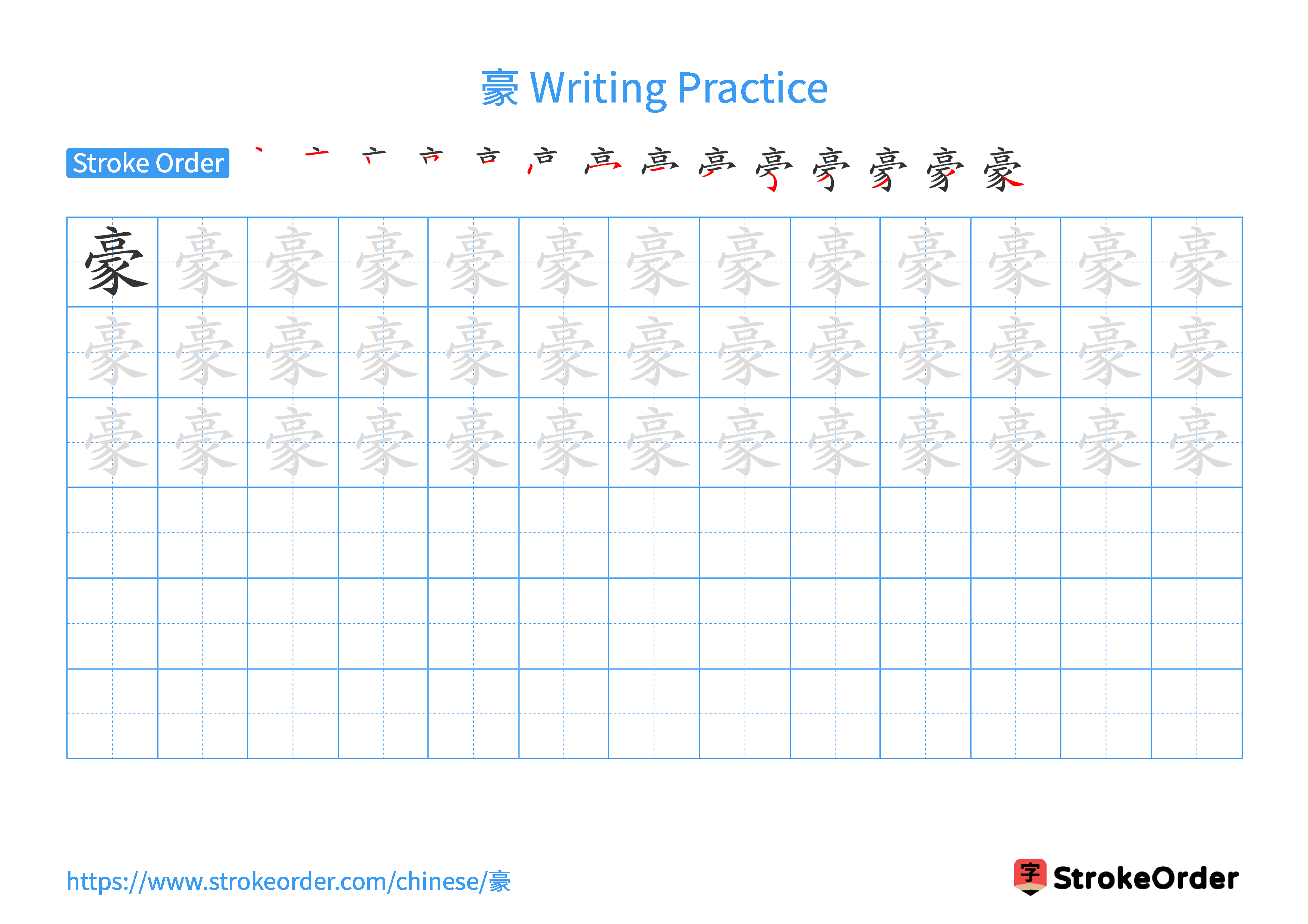 Free Printable Handwriting Practice with Stroke Order: 豪