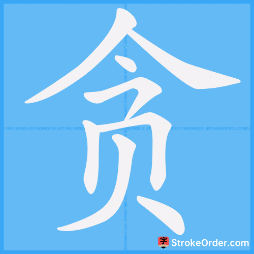 Watch the video of writing the Chinese character "贪", learn the correct stroke order (笔顺) of the character "贪", and master the standard way of writing the character "贪".