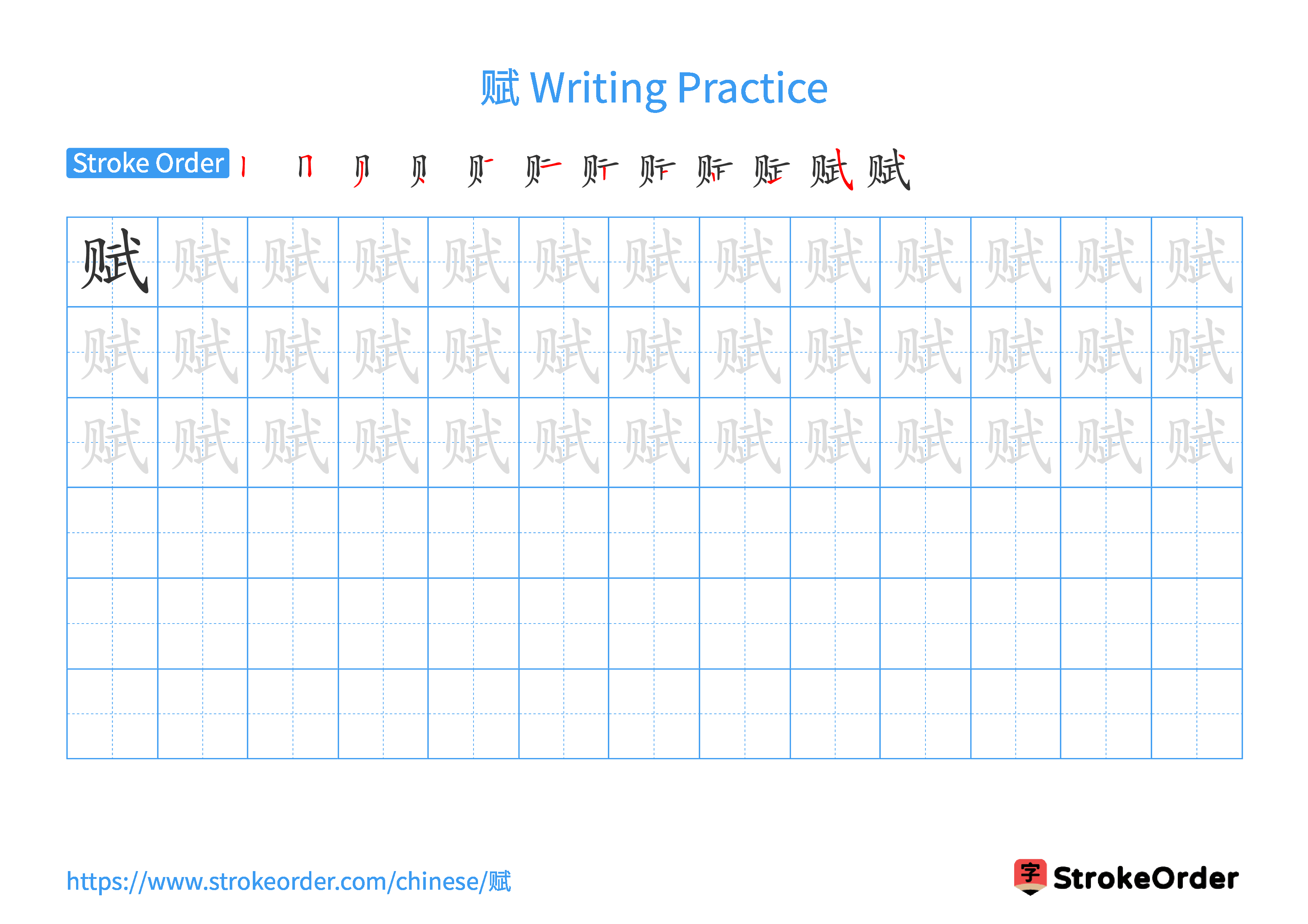 Free Printable Handwriting Practice with Stroke Order: 赋
