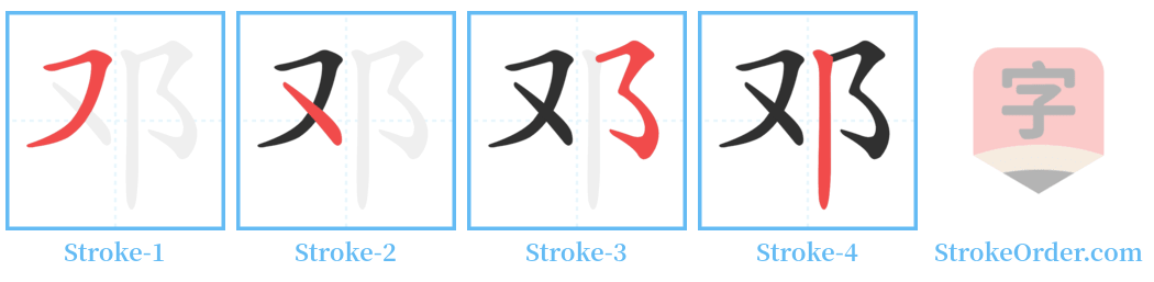 Watch the video of writing the Chinese character "邓", learn the correct stroke order (笔顺) of the character "邓", and master the standard way of writing the character "邓".