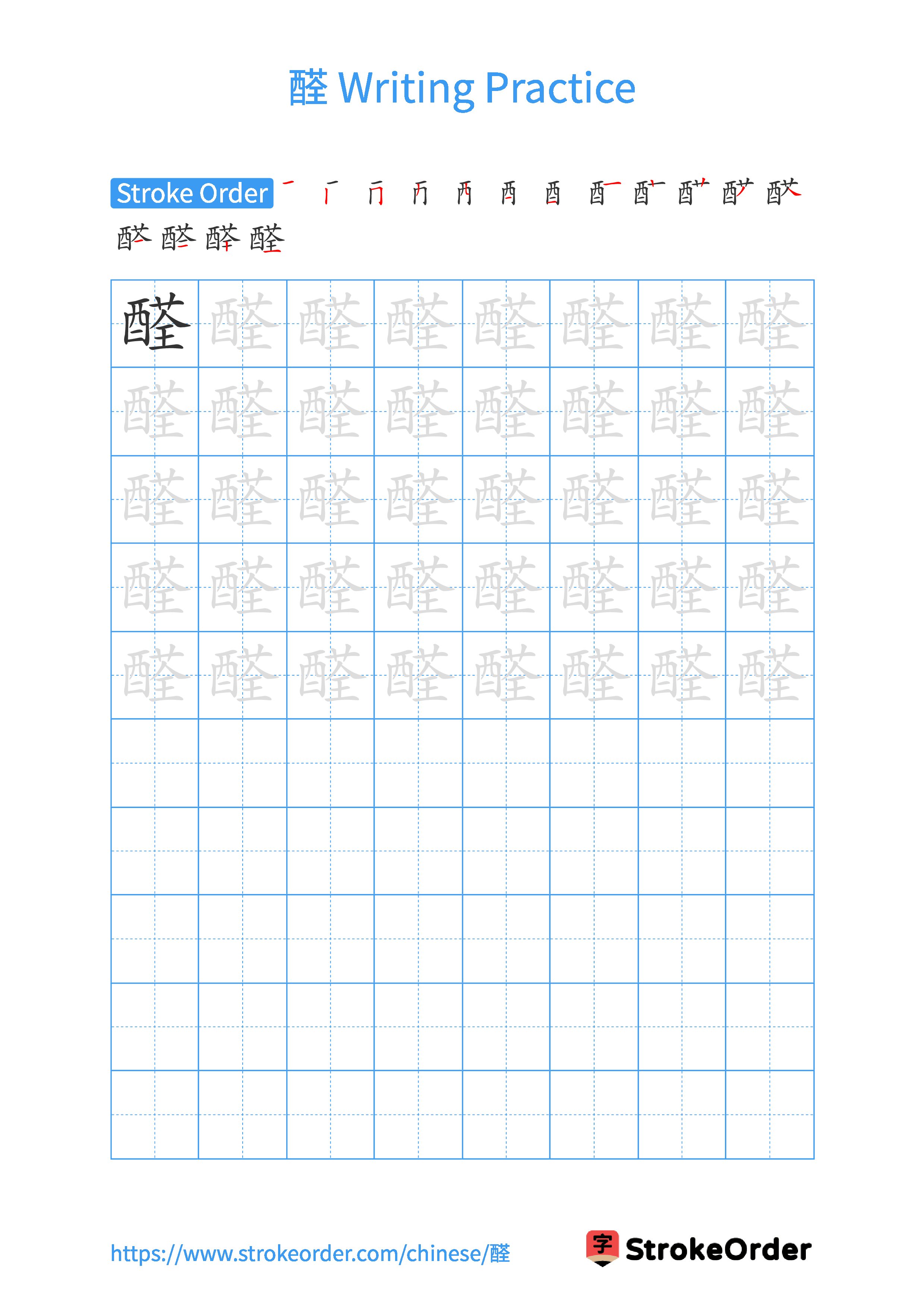 Free Printable Handwriting Practice with Stroke Order: 醛