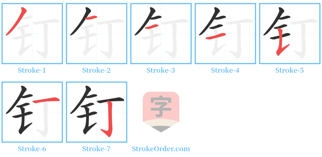 Free Printable Handwriting Practice with Stroke Order: 钉