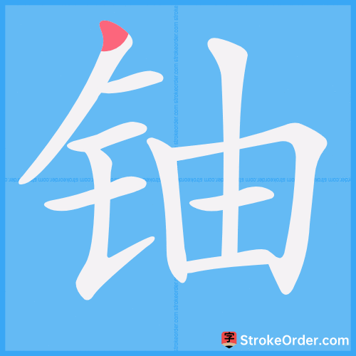 Watch the video of writing the Chinese character "铀", learn the correct stroke order (笔顺) of the character "铀", and master the standard way of writing the character "铀".