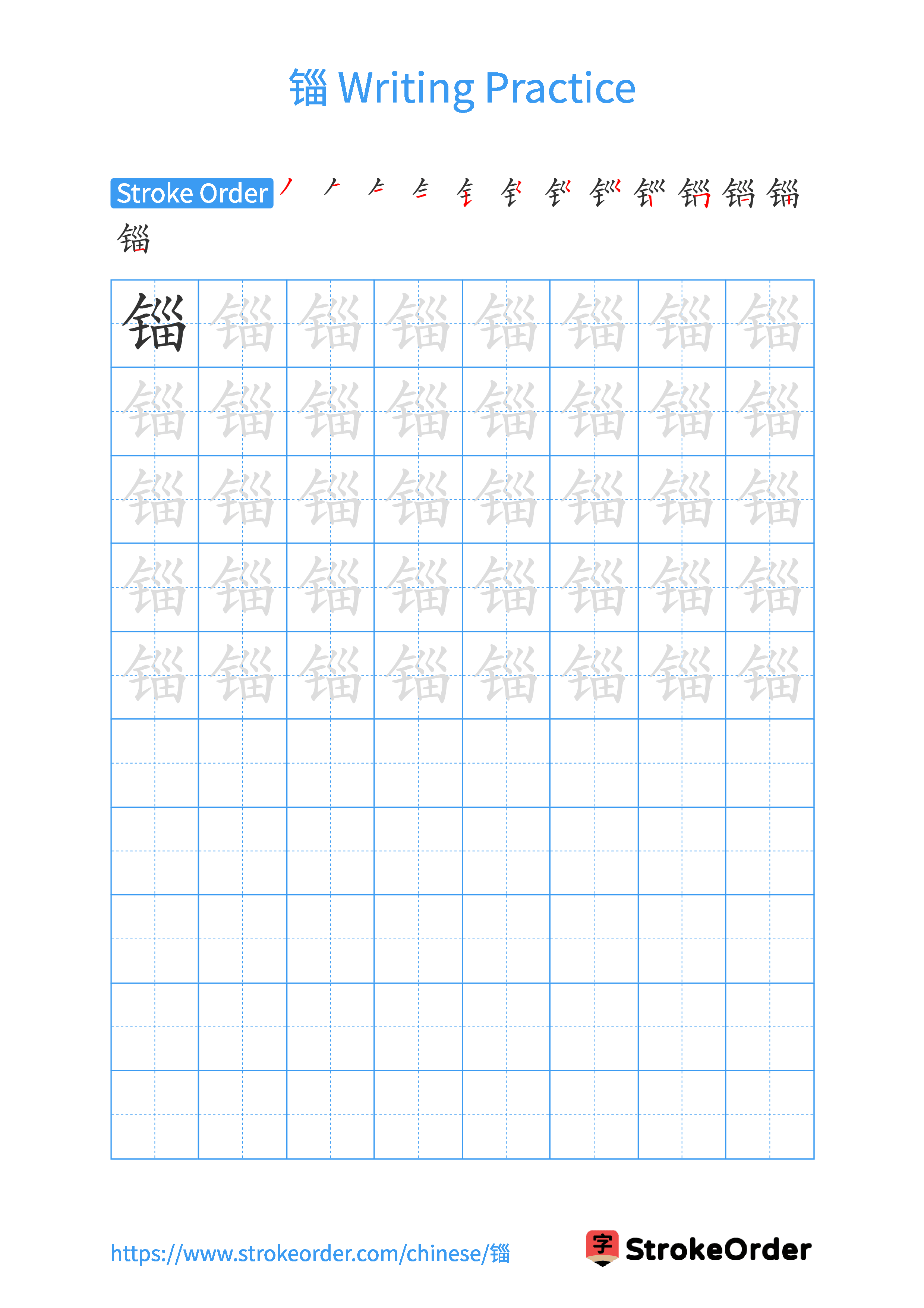 Free Printable Handwriting Practice with Stroke Order: 锱