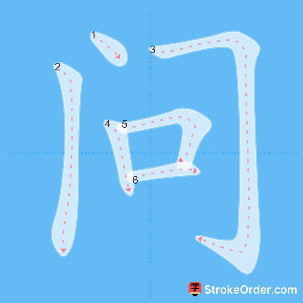 Watch the video of writing the Chinese character "问", learn the correct stroke order (笔顺) of the character "问", and master the standard way of writing the character "问".