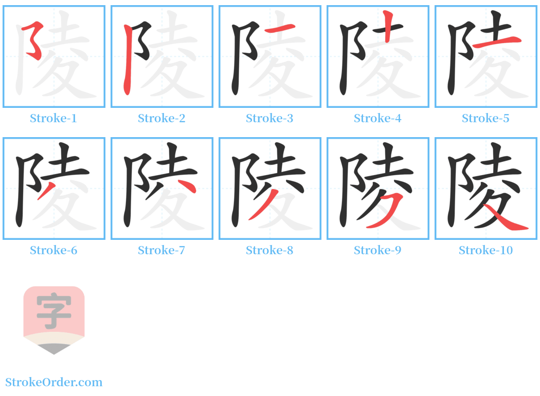 Watch the video of writing the Chinese character "陵", learn the correct stroke order (笔顺) of the character "陵", and master the standard way of writing the character "陵".