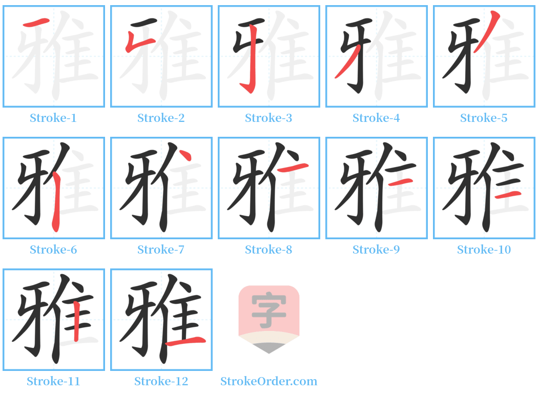 Stroke Order Diagrams for 雅