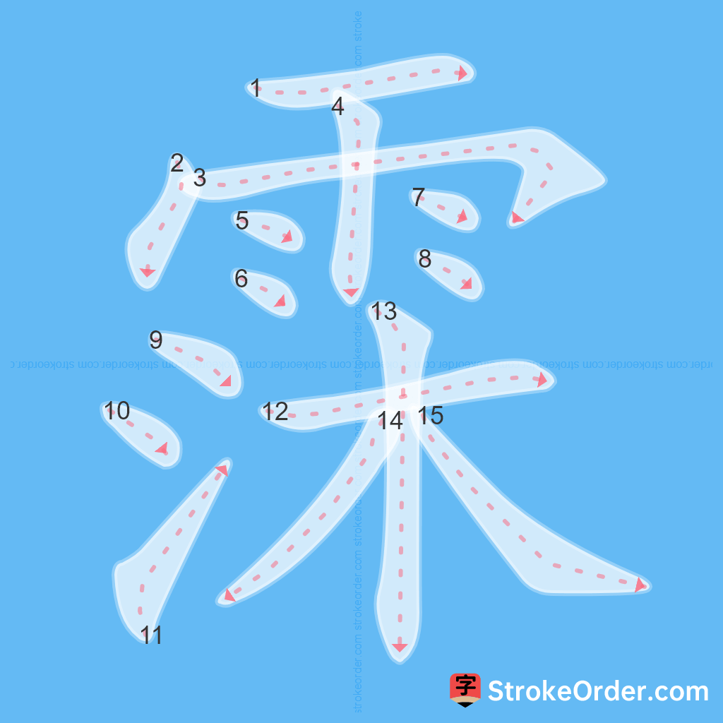 Watch the video of writing the Chinese character "霂", learn the correct stroke order (笔顺) of the character "霂", and master the standard way of writing the character "霂".