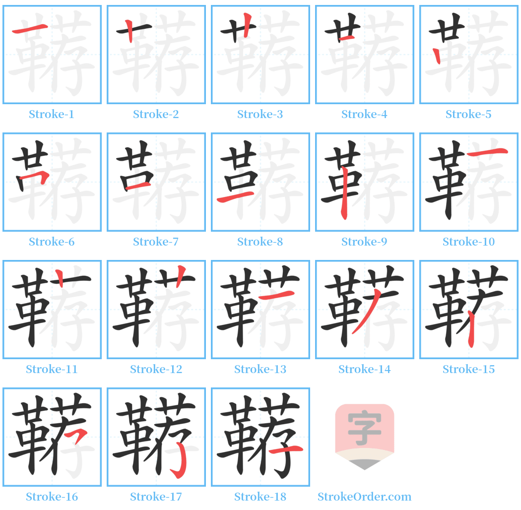 Free Printable Handwriting Practice with Stroke Order: 鞯