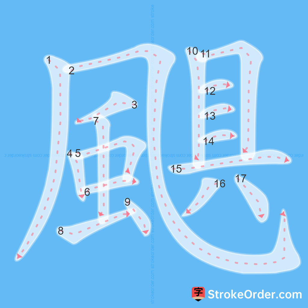 Watch the video of writing the Chinese character "颶", learn the correct stroke order (笔顺) of the character "颶", and master the standard way of writing the character "颶".