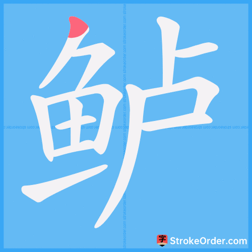 Watch the video of writing the Chinese character "鲈", learn the correct stroke order (笔顺) of the character "鲈", and master the standard way of writing the character "鲈".