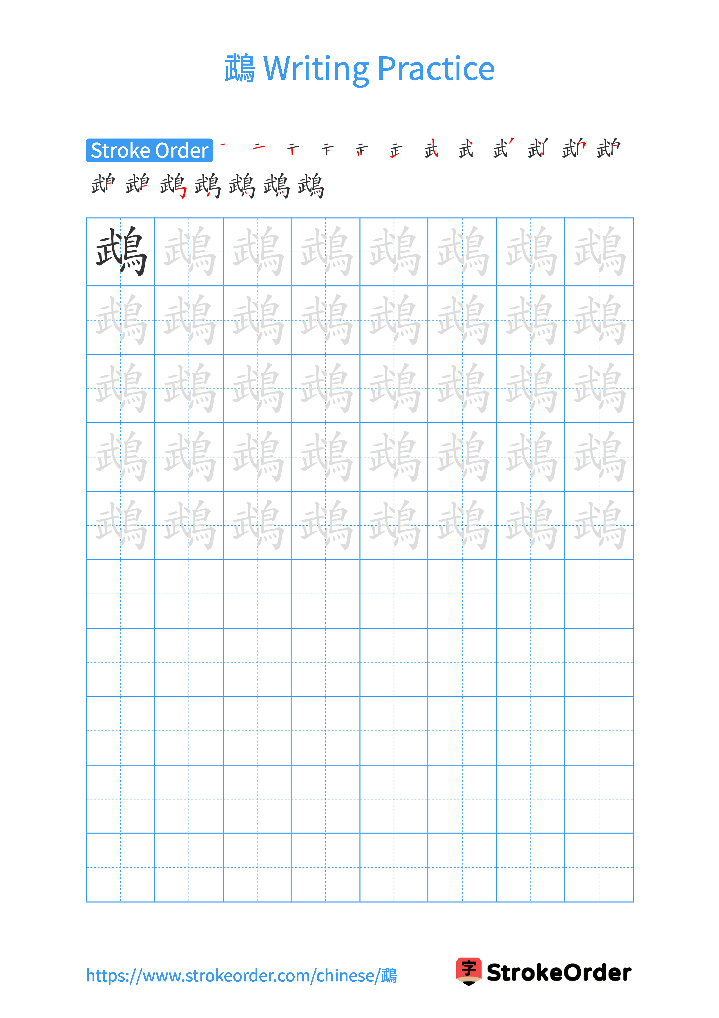 Free Printable Handwriting Practice with Stroke Order: 鵡