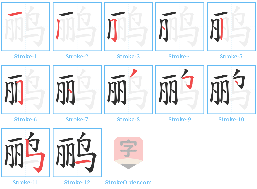 Free Printable Handwriting Practice with Stroke Order: 鹂