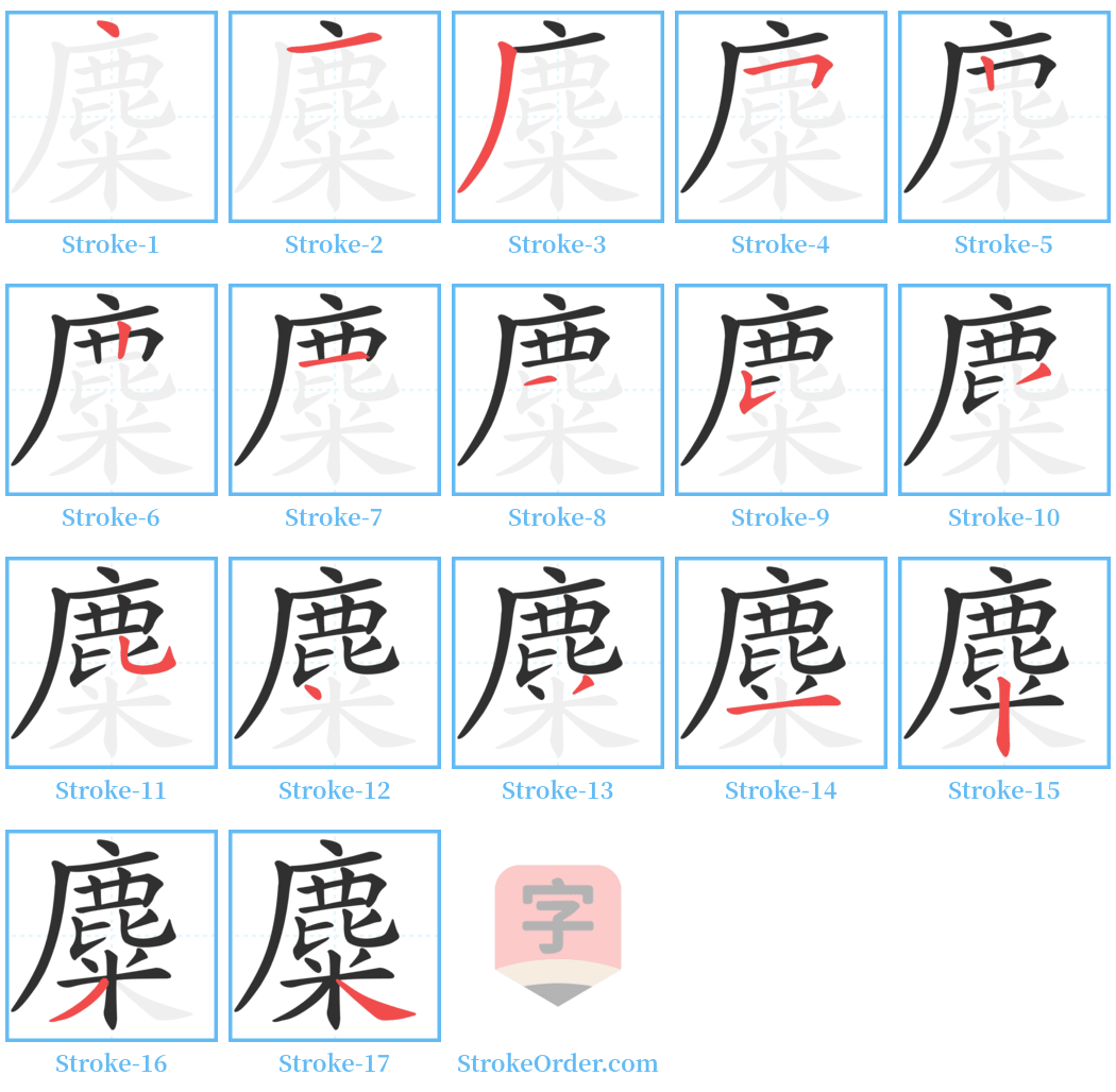 Free Printable Handwriting Practice with Stroke Order: 麋
