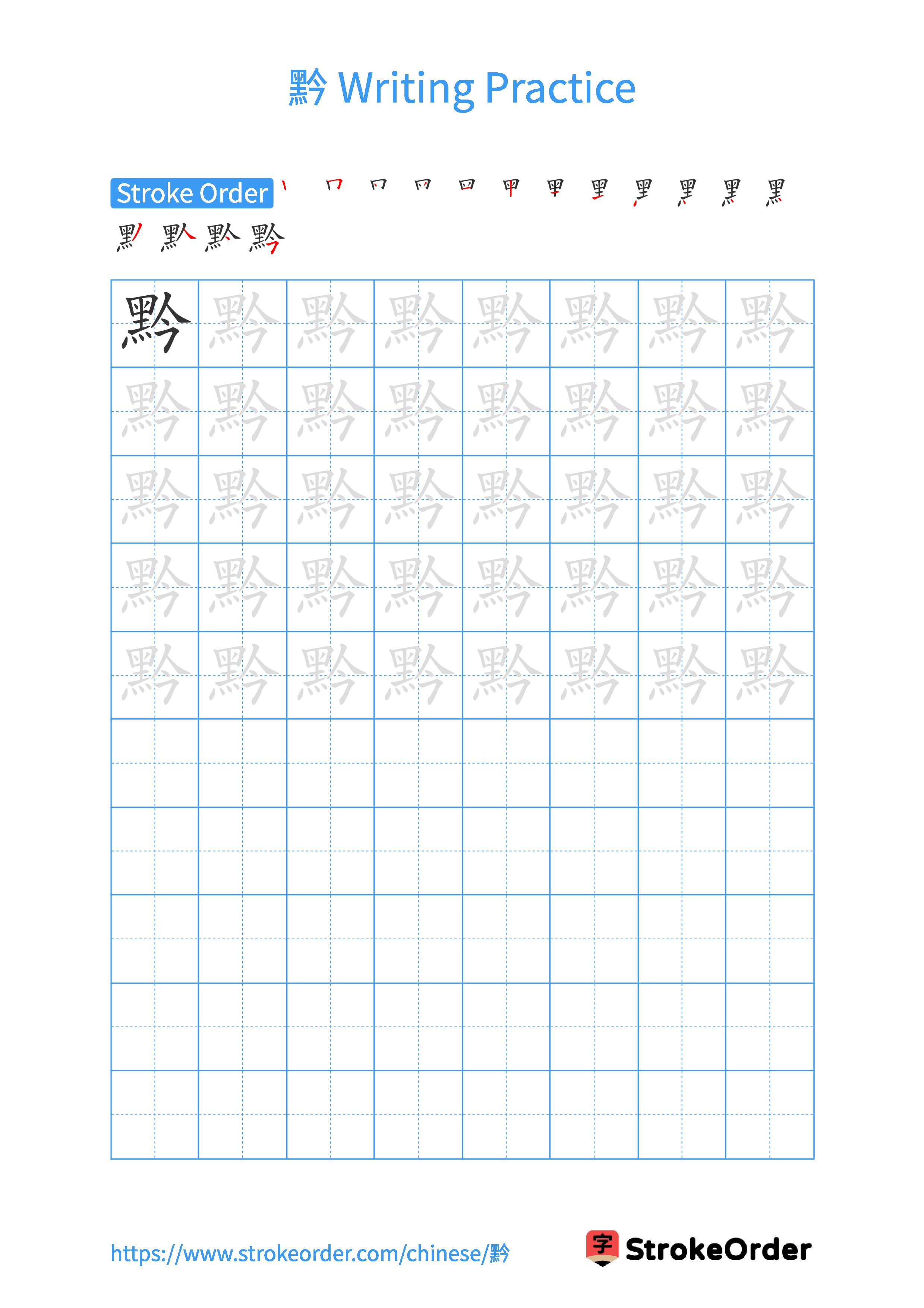 Free Printable Handwriting Practice with Stroke Order: 黔