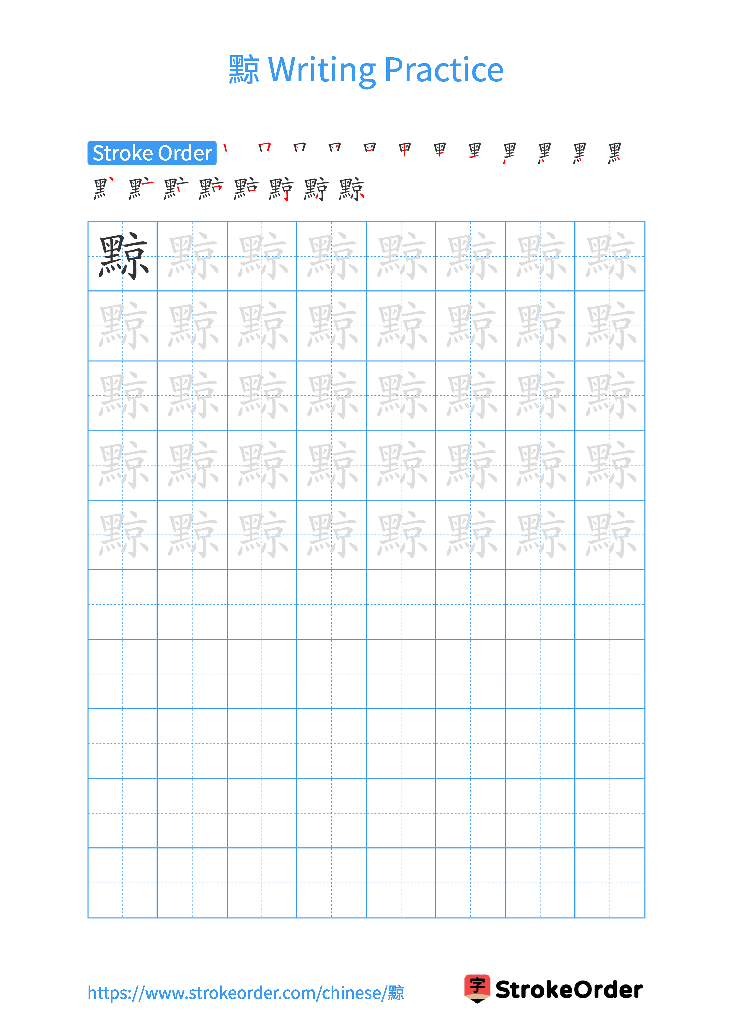 Free Printable Handwriting Practice with Stroke Order: 黥
